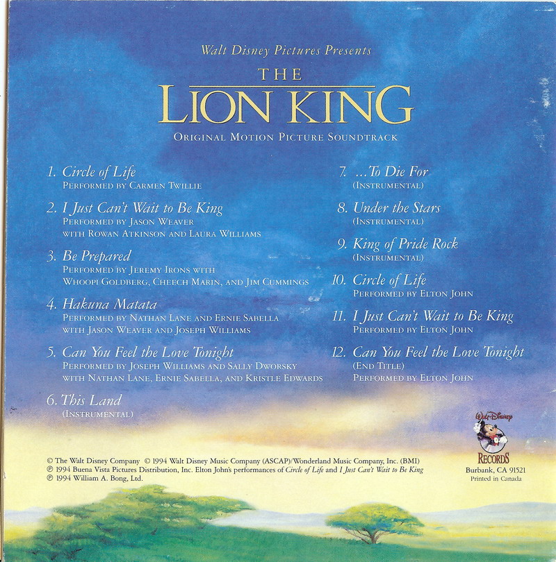 Странно, но факт, на форуме я не нашел темы, где обсуждался бы муз. акконпанемент Короля льва, а если и имело место, то разговоры велись про Элтона Джона, его песни ремиксовались в сценах, но не везде.
