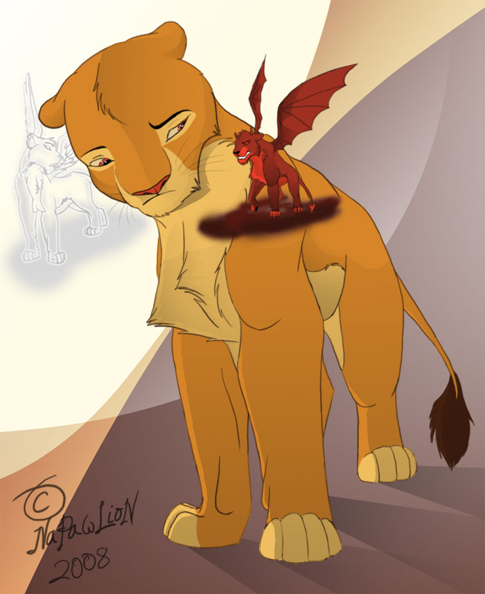 С учетом яркости освещения на льве, логично было бы предположить, что настолько же сильно освещение будет и на остальной местности, включая почву. Настолько косое освещение будет сложновато изобразить, но получиться должно красиво. С другой стороны, можно предположить, что лев освещен лучом. Тогда с бэком будет чуть попроще