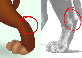 Можно еще отметить, что задняя правая лапа заметно тоньше задней левой, и сильно сужается к тазобедренному суставу в отличие от левой.