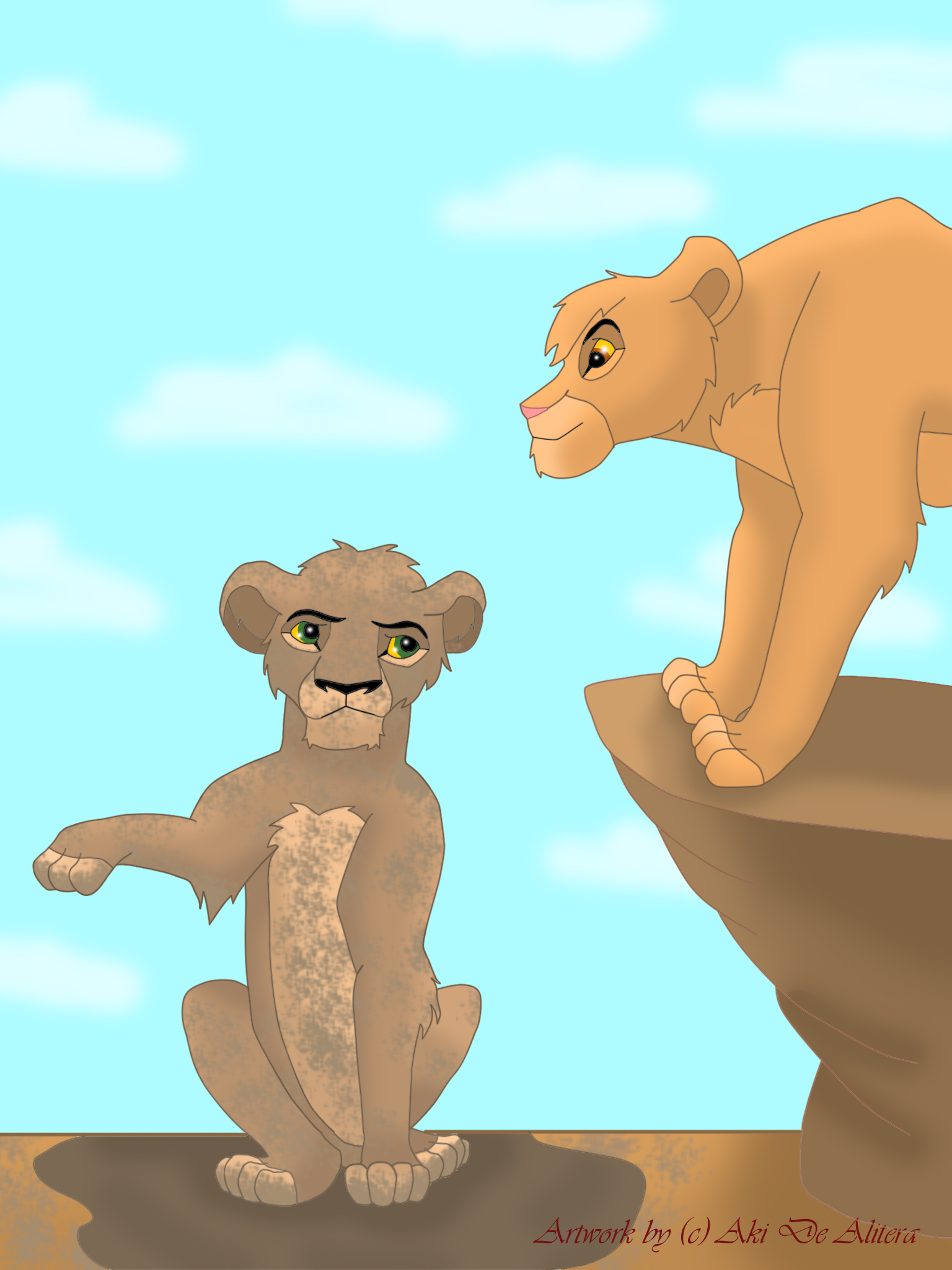 3) Одноцветный фон. Африканский пейзаж или стена пещеры в Скале Прайда создавали бы в рисунке атмосферу TLK. Синий фон, наоборот, создаёт впечатление чего угодно, только не саванны. Советую ознакомиться с туториалом по фону.