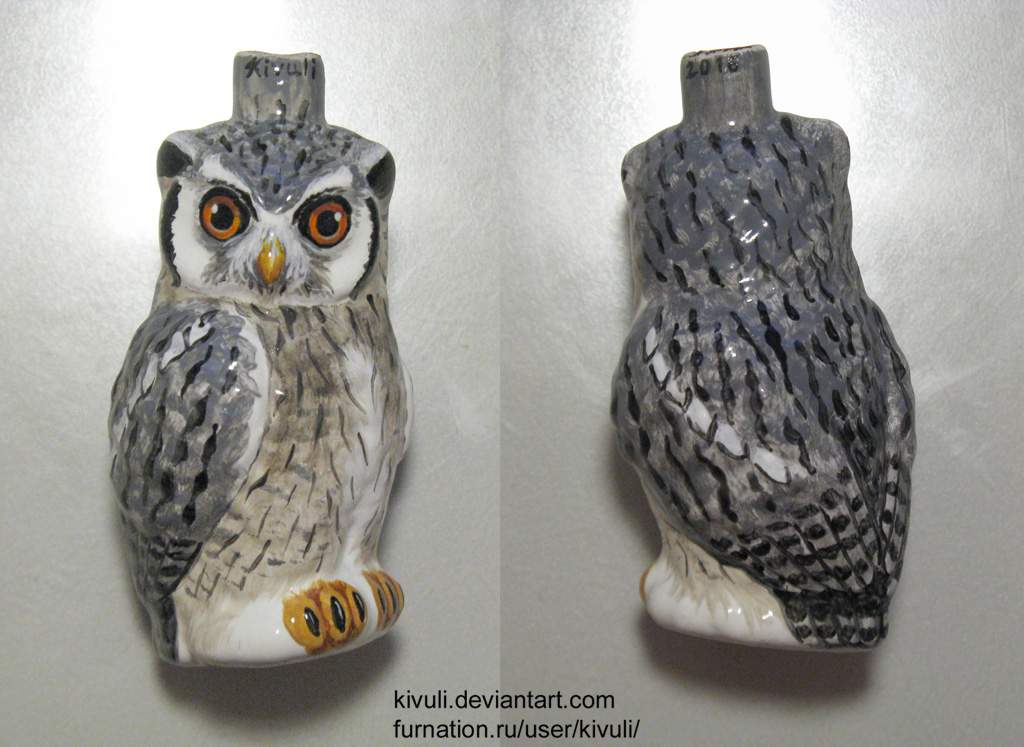 Сов перелепливать не пришлось, они и так симпатичные. Надо было только отмыть от дефолтной покраски, оплавить кончик отломанной трубочки (а то они так и норовят отломиться, когда достаешь крепление) и, как показала практика, отжиг (медленный нагрев и остывание, чтоб убрать напряжения в стекле) тоже был не лишним — одна сова начала трескаться в руках при помывке, хотя особо на нее не давила.