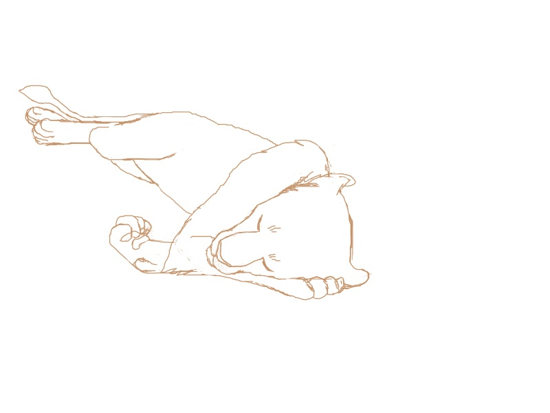 Спящая львица мне нравится, разве что кажется, что можно сделать ту лапу, которую ты уже подправила, немного меньше. Раз уж здесь такая выраженная перспектива, подушечки кажутся слишком бльшими. А может это просто меня глючит.