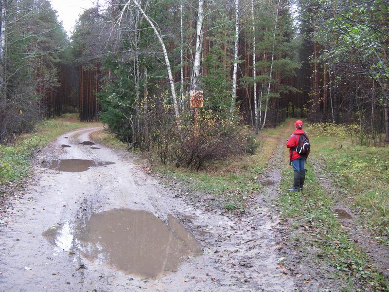 Дорога шла через сосновые посадки и была вполне проезжая для Нивы, Газ 66 и прочих внедорожников. Сколько раз мы помянули «крокодила»! С другой стороны, этот поход уже совсем не тянул даже на Рдею суперлайт. Заблудиться там с нормальной картой, а тем более ГПСом очень сложно. Но на всякий случай уточнили направление у встречного мужика на велосипеде.
