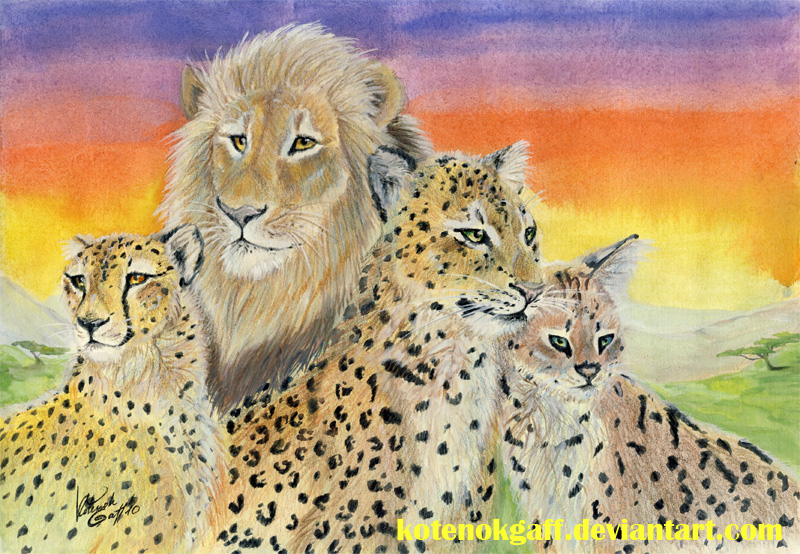 Мммм)))) Классный рисунок, очень красивый) Только не пойму, вижу лев, вижу гепард, вижу... эм... леопард? А четвертый кто?