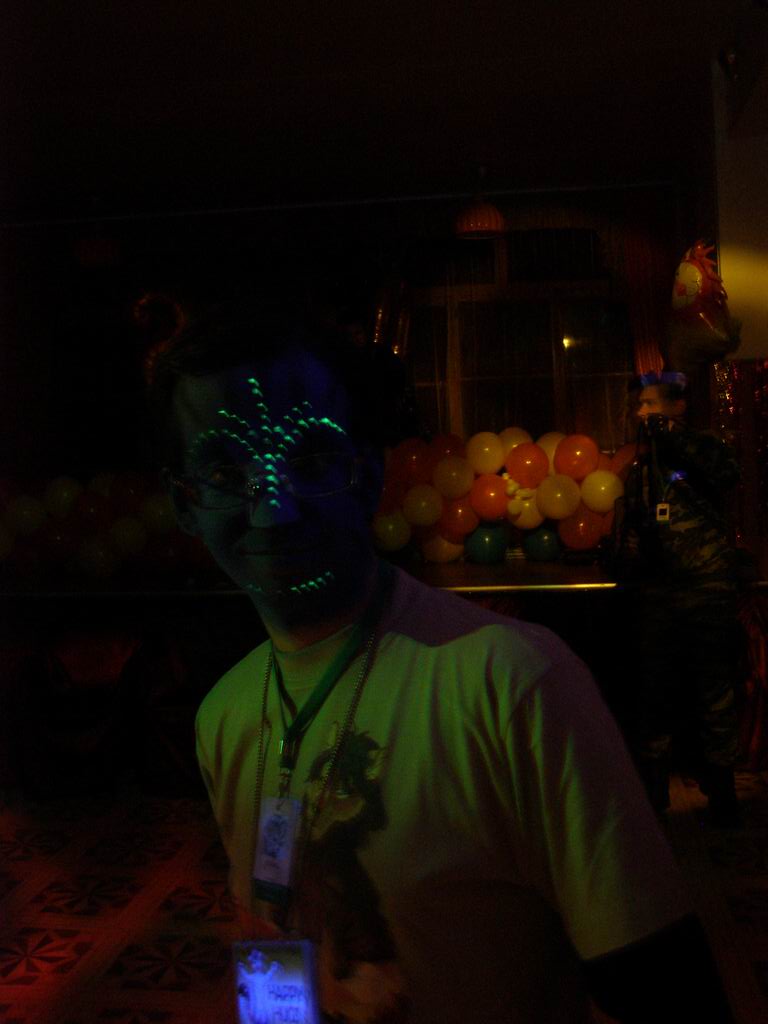 Атари и Рагнарек еще приклеивали носы из папье-маше (в двух точках клеем UHU, является аналогом момента, вроде менее ядреный, с согласия оклеиваемых, без аллергических реакций). Светящиеся точки ставились люминесцентным гелем, безвредным при попадании на кожу. Рагнарьку пытались подкрасить содержимым глоустика (опять же, предварительно почитав инструкцию к ним, безвредно, но может чуть пощипывать), но оно довольно быстро прекращает светиться.