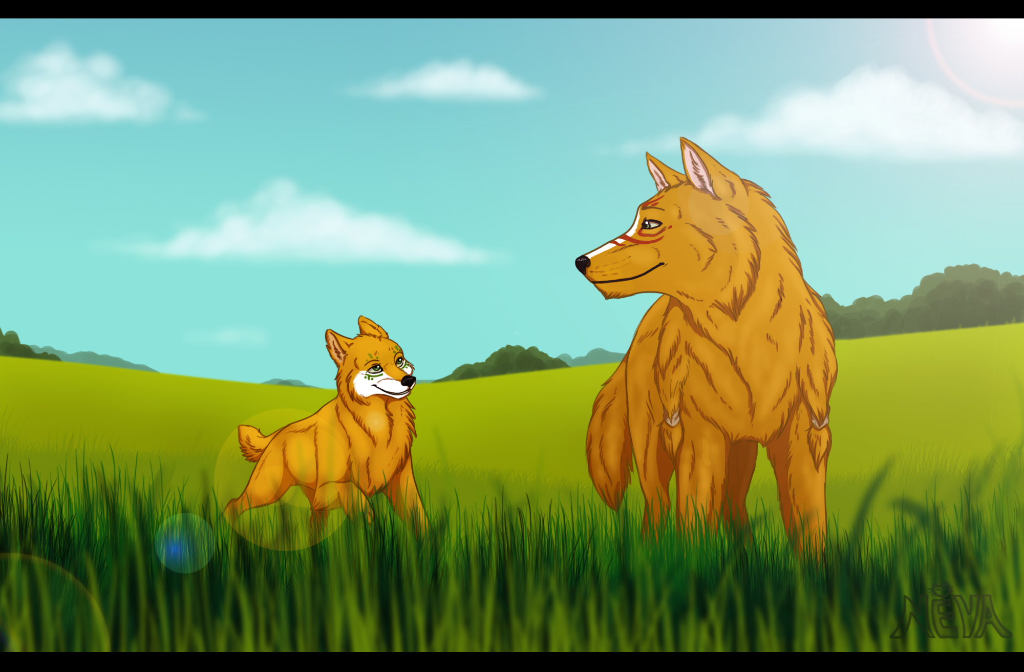 Вот еще парочка рисунков. Моя Нева, гоняющая осу и мой новый персонаж: хаски по имени Амарок =)