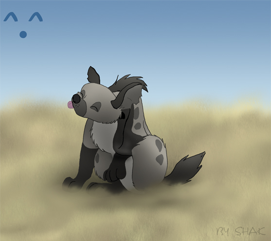А я понял ! там вроде гиена (Шак, твой вроде персонаж, нэ ? ) нарисовала на стене еду, а персонаж думал, что это настоящая еда и ел стену XD