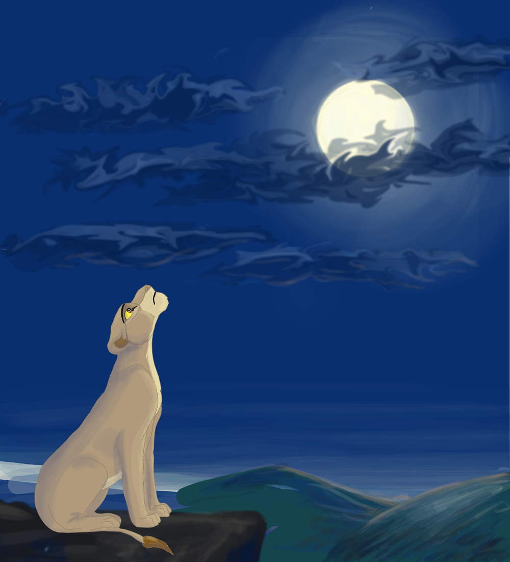Если бы картина была чуть потемнее, можно было бы высветлить контур - ночью крайние шерстинки просвечиваются луной, и вокруг персонажа образуется угловатый серебристый ореол (примеры: 1, 2), но здесь это не нужно.
